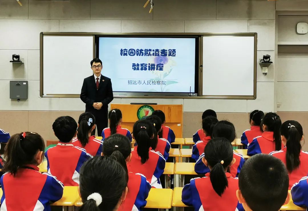 “六一”兒童節(jié)即將來(lái)臨之際,招遠(yuǎn)市人民檢察院“金鼎”青年志愿先鋒服務(wù)隊(duì)的干警開展“向日葵”行動(dòng)送法進(jìn)校園,走進(jìn)招遠(yuǎn)市泉山學(xué)校,為該校80余名同學(xué)送去了一堂別開生面的法治教育課。檢察干警以預(yù)防校園暴力、防性侵及預(yù)防網(wǎng)絡(luò)詐騙為主題,結(jié)合典型案例和法律規(guī)定,用通俗易懂的語(yǔ)言,講述了校園欺凌、性侵及網(wǎng)絡(luò)詐騙的定義、危害、產(chǎn)生原因和法律責(zé)任。期間,檢察干警與在場(chǎng)的學(xué)生積極互動(dòng),就同學(xué)們現(xiàn)場(chǎng)提出的問(wèn)題進(jìn)行解答,引導(dǎo)同學(xué)們養(yǎng)成遵紀(jì)守法、自覺(jué)抵制不良行為的良好習(xí)慣和法治意識(shí)。隨后通過(guò)講述真實(shí)案例,讓同學(xué)們意識(shí)到違法犯罪行為的利害關(guān)系,提高同學(xué)們的自我保護(hù)意識(shí),讓大家可以有效預(yù)防。