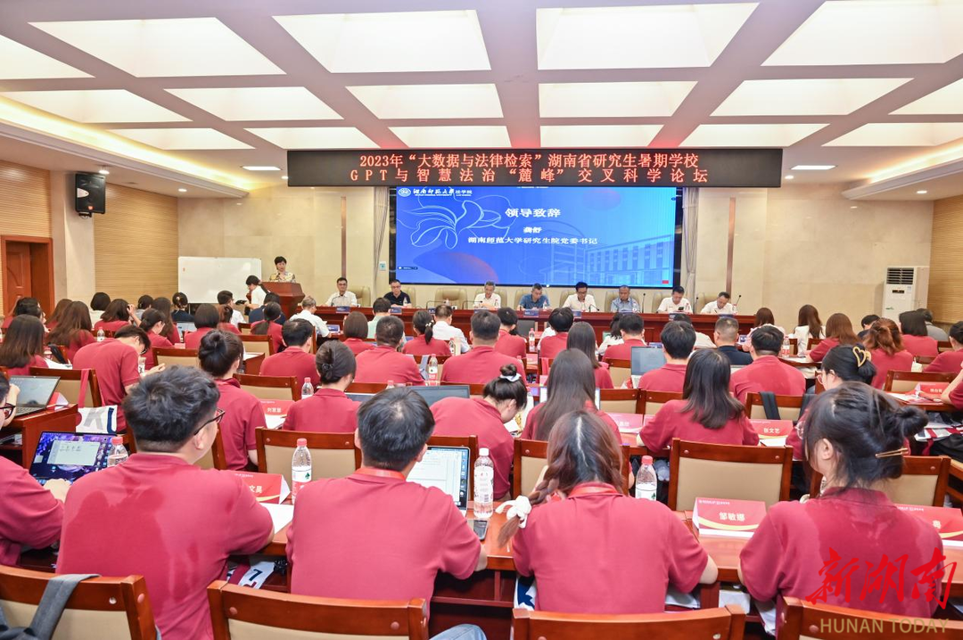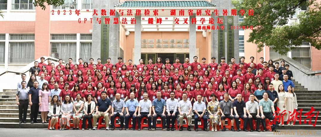 8月1日,“大數(shù)據(jù)與法律檢索”湖南省研究生暑期學(xué)校在湖南師范大學(xué)法學(xué)院開班,并在開幕式后舉行了GPT與智慧法治“麓峰”交叉學(xué)科論壇。來(lái)自最高人民檢察院、北京大學(xué)、中國(guó)人民大學(xué)、北大法寶等單位近30位專家學(xué)者對(duì)上述前沿問(wèn)題給出了答案,暑期學(xué)校128名學(xué)員線下參與學(xué)習(xí)。1.2萬(wàn)余人通過(guò)北大法寶學(xué)堂平臺(tái)觀看了同步直播。