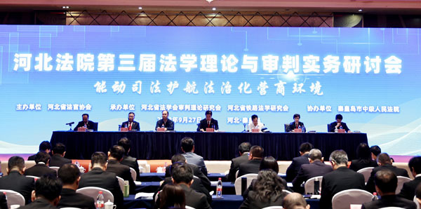 9月27日,河北省高級人民法院第三屆法學(xué)理論與審判實(shí)務(wù)研討會(huì)在秦皇島市舉辦。此次研討會(huì)由河北省法官協(xié)會(huì)主辦、省法學(xué)會(huì)審判理論研究會(huì)與省鐵路法學(xué)研究會(huì)共同承辦,秦皇島市中級人民法院協(xié)辦,圍繞“為優(yōu)化法治化營商環(huán)境提供有力司法保障”主題,深入開展法學(xué)理論與審判實(shí)務(wù)研究。河北省高級人民法院黨組成員、副院長劉光輝參加研討會(huì)。