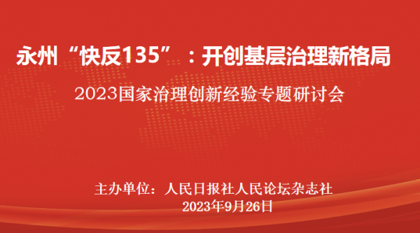 9月26日,“永州‘快反135’:開創(chuàng)基層治理新格局——2023國家治理創(chuàng)新經(jīng)驗(yàn)專題研討會”在北京人民日報(bào)社新媒體大廈舉行。