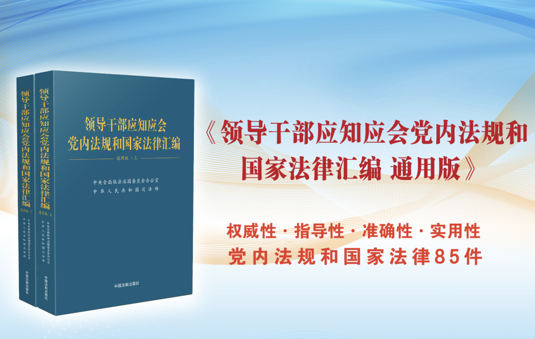 中央依法治國辦、司法部編輯的《領導干部應知應會黨內法規(guī)和國家法律匯編 通用版》一書,近日由中國法制出版社公開出版發(fā)行。