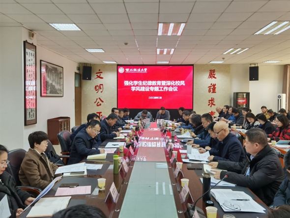 為進(jìn)一步落實(shí)立德樹人根本任務(wù),強(qiáng)化學(xué)生紀(jì)律教育,優(yōu)化校風(fēng)學(xué)風(fēng)建設(shè)工作,深入推進(jìn)本科教育教學(xué)評(píng)估工作提效增質(zhì),近日,強(qiáng)化學(xué)生紀(jì)律教育暨深化校風(fēng)學(xué)風(fēng)建設(shè)專題工作會(huì)議在西北政法大學(xué)舉行。