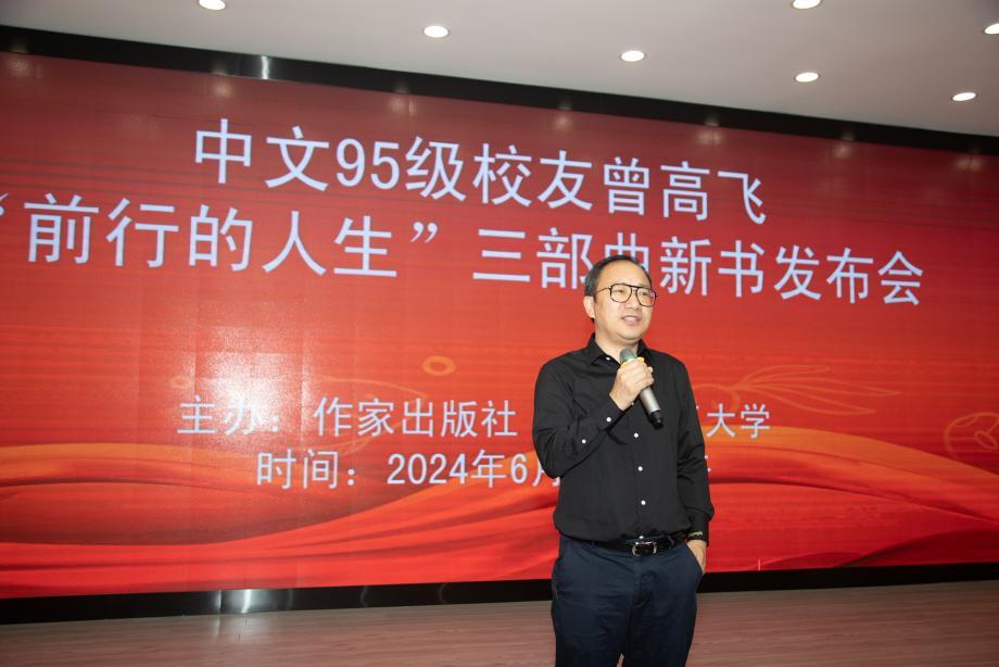 6月18日上午,長(zhǎng)沙理工大學(xué)95級(jí)校友、知名文學(xué)家和財(cái)經(jīng)作家曾高飛長(zhǎng)篇小說《前行的人生》三部曲新書發(fā)布會(huì)在長(zhǎng)沙理工大學(xué)云塘校區(qū)舉行。中央文史館館員、中國(guó)文學(xué)藝術(shù)界聯(lián)合會(huì)原副主席仲呈祥,作家出版社副總編輯顏慧,長(zhǎng)沙理工大學(xué)黨委委員、副校長(zhǎng)談傳生等出席發(fā)布會(huì)。發(fā)布會(huì)由長(zhǎng)沙理工大學(xué)文學(xué)與新聞學(xué)院教授、湖南省政府參事成松柳主持。