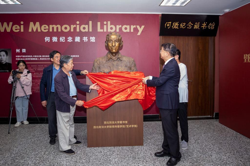 西北政法大學(xué)黨委副書記、校長范九利,人民日報出版社總編輯丁丁,新華社寧夏分社、吉林分社原社長申尊敬,中國新聞史學(xué)會新聞傳播教育史研究會會長張昆,以及何微親屬代表張振林等出席了揭幕儀式并致辭。西北政法大學(xué)黨委副書記、紀(jì)委書記、監(jiān)察專員劉志彬主持揭幕儀式。