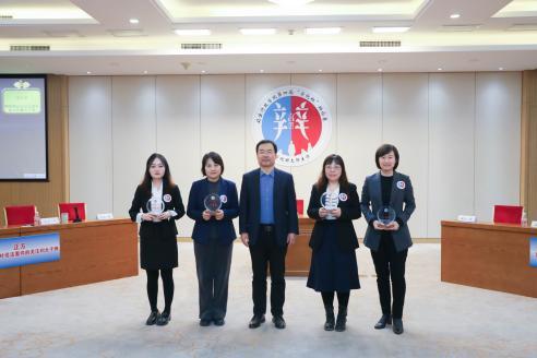 (司法行政學(xué)院院長(zhǎng)孫艷輝為團(tuán)體一等獎(jiǎng)?lì)C發(fā)獎(jiǎng)杯)