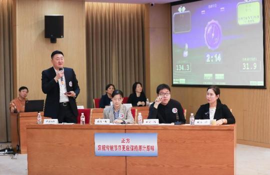 正方三辯迅速回應(yīng):“我方指的‘原汁原味’是指對(duì)傳統(tǒng)的節(jié)日文化進(jìn)行繼承和發(fā)展”。