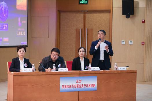 比賽評(píng)委、法治網(wǎng)副總編劉青在賽后點(diǎn)評(píng)時(shí),語(yǔ)氣中帶著贊許:“正值小雪節(jié)氣,討論慶祝傳統(tǒng)節(jié)日的方式特別有意義。今天,正反雙方通過(guò)充分的論辯,不僅展示了他們對(duì)傳統(tǒng)文化的深刻理解,也體現(xiàn)了他們?cè)趥鞒信c創(chuàng)新之間尋求平衡的智慧”。