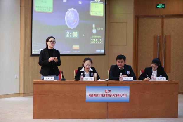 自由辯論環(huán)節(jié),正方明確主張:“法官在審理案件時(shí),應(yīng)基于內(nèi)心的良知、對(duì)全案事實(shí)整體的把握以及對(duì)相關(guān)法律的深入分析作出判決。網(wǎng)絡(luò)輿論對(duì)司法案件的關(guān)注,有助于陽(yáng)光司法”。
