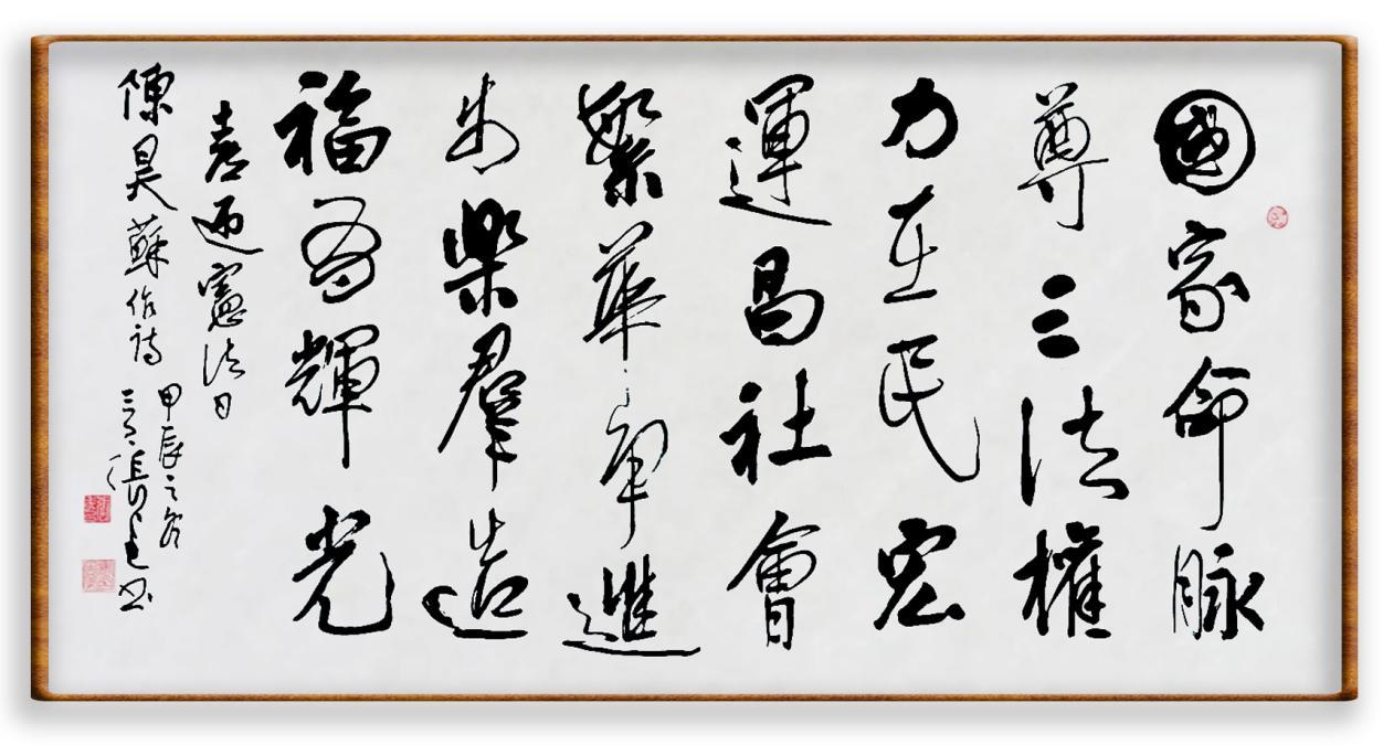 12月4日是第十一個國家憲法日。當天,由法制日報社、中國人民解放軍儀仗司禮大隊主辦的“‘書·法’系列活動走進中國人民解放軍儀仗司禮大隊暨‘書·法’系列叢書書法作品集首發(fā)活動”在北京舉行。活動得到中國人民對外友好協(xié)會原會長陳昊蘇的熱情支持,陳會長以《喜迎憲法日》為題賦詩二首,并在詩的開頭寫到:“在國家憲法日舉行‘書·法’有關活動,意義十分重大。我謹寄上詩二首,表示熱烈祝賀。”