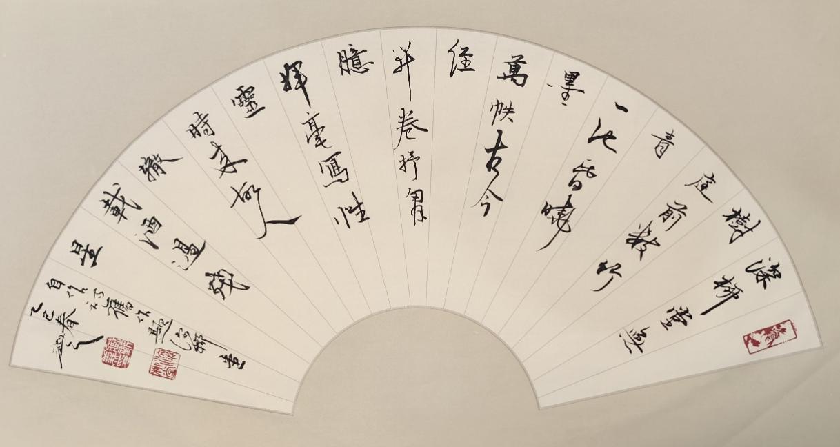 深柳堂正堂約三十平,中置三米大書案,后一列四米書柜,書籍滿墻,宣紙堆山。另有木榻竹幾,散貯書卷。書案正對一個(gè)書法中堂,兩側(cè)為自書陸放翁書房對聯(lián):萬卷古今消永日,一窗昏曉送流年?!松喽?,似水流年,我亦愿在這深柳堂中南窗寄傲,蘊(yùn)藉滋養(yǎng)著仿佛貫穿千載時(shí)光的淡定與從容。