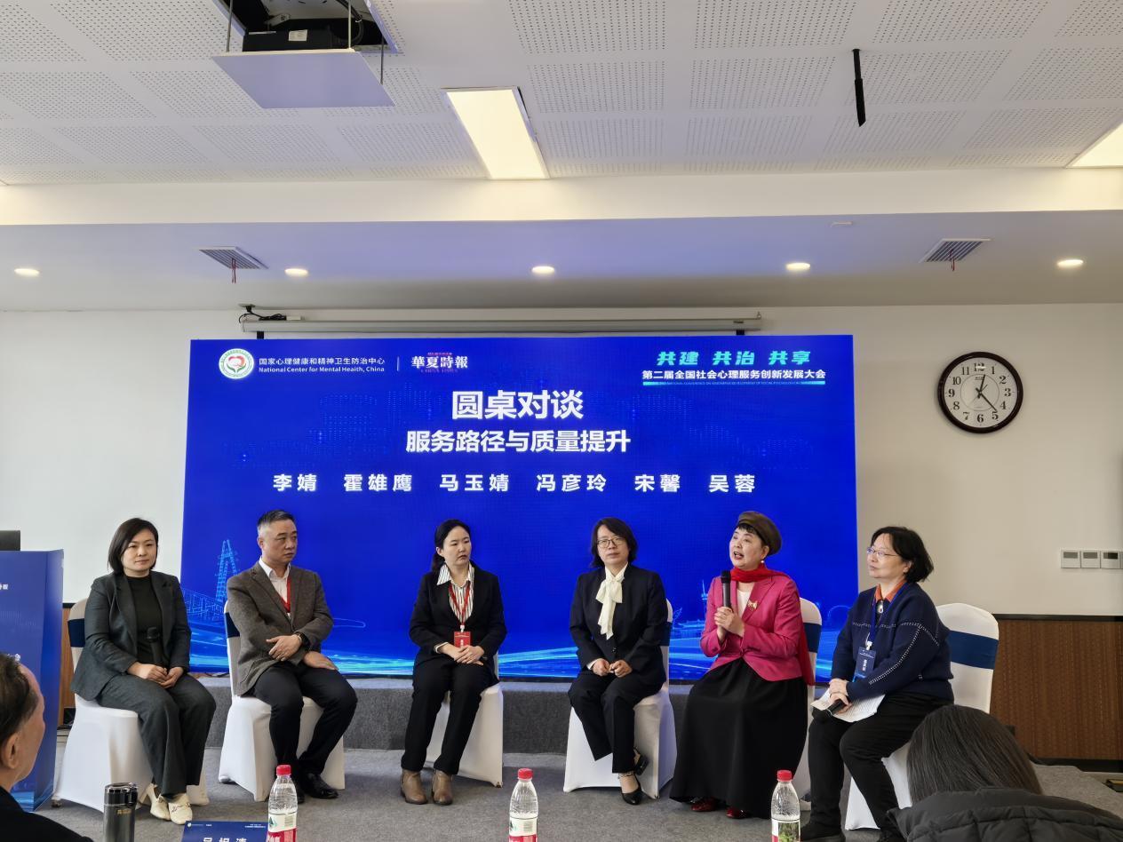 圖為宋馨在圓桌對(duì)話會(huì)上分享為困境兒童提供心理健康關(guān)愛服務(wù)