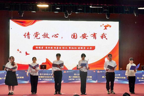 西北政法大學(xué)第八屆國(guó)家安全知識(shí)競(jìng)賽于今年3月正式拉開(kāi)帷幕。4月10日,本屆知識(shí)競(jìng)賽決賽在長(zhǎng)安校區(qū)滿天星學(xué)術(shù)報(bào)告廳圓滿舉行。素養(yǎng)展示環(huán)節(jié),法治宣講團(tuán)成員以“請(qǐng)黨放心,強(qiáng)國(guó)有我”為題進(jìn)行宣講展示。