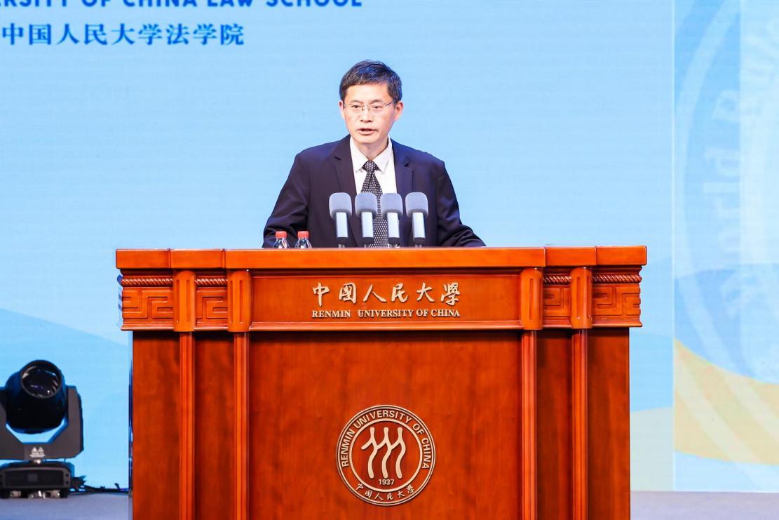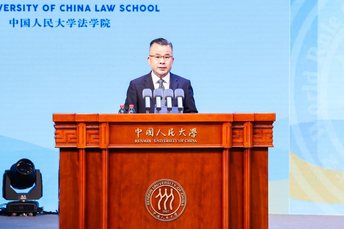 圖為中國人民大學法學院院長楊東在論壇主會場開幕式上發(fā)布《全球南方法學教育合作倡議》。