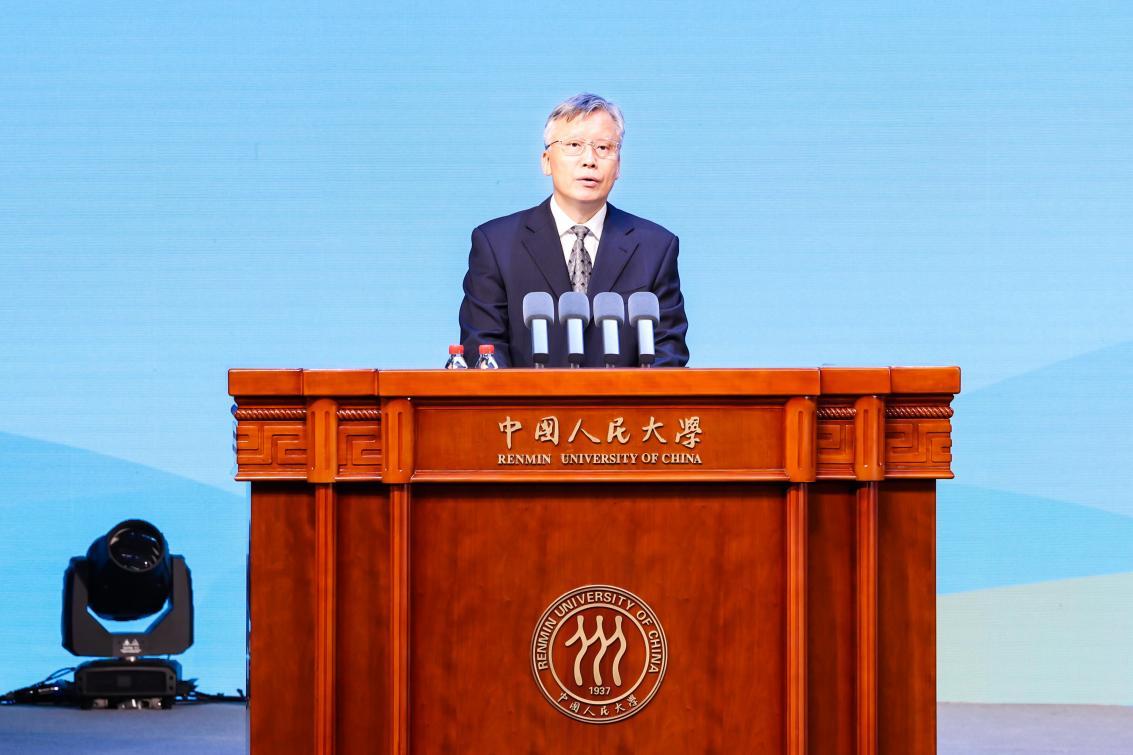 圖為中國人民大學副校長鄭新業(yè)在論壇主會場開幕式上致辭。