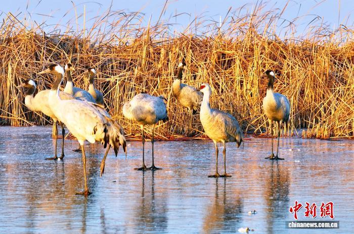張余廣表示,此前衡水湖已有記錄的是丹頂鶴、白枕鶴、白頭鶴、白鶴、蓑羽鶴、灰鶴。沙丘鶴的罕見現(xiàn)身,有力印證當(dāng)?shù)貪竦厣鷳B(tài)環(huán)境的持續(xù)改善。目前,在衡水湖越冬的鶴類數(shù)量已超過2000只。