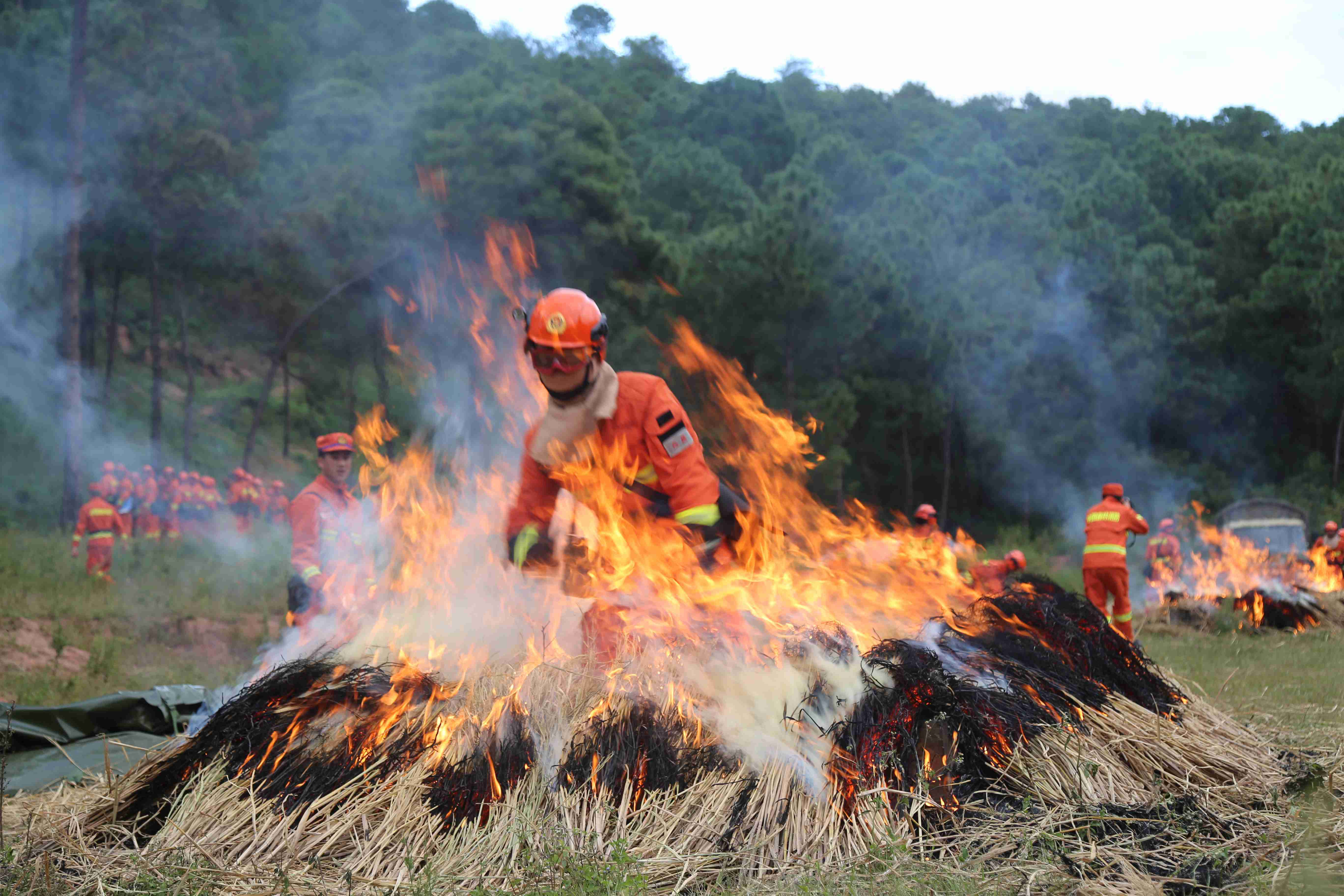 涼山森林消防支隊野外駐訓場上硝煙彌漫。