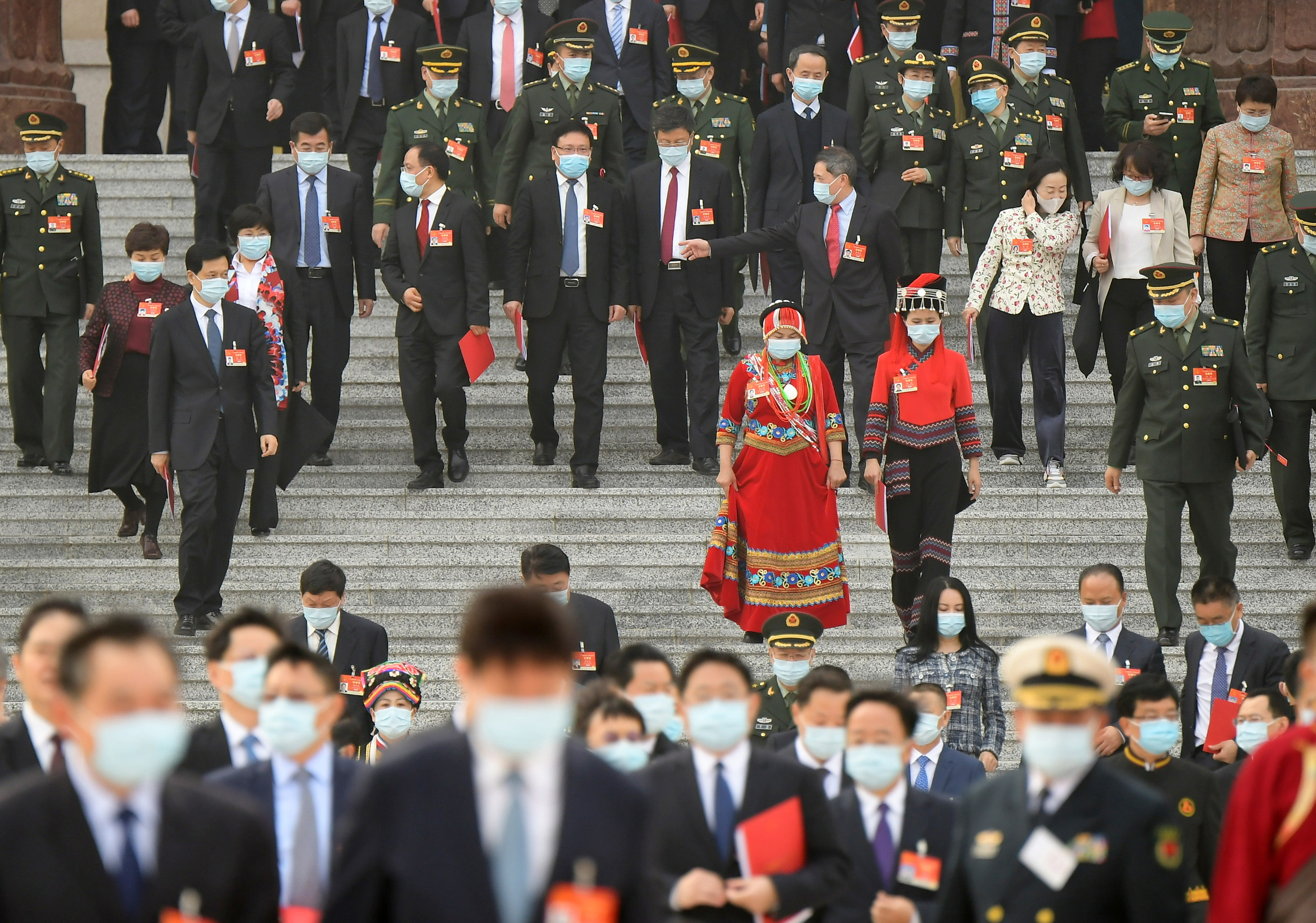 3月11日,第十三屆全國人民代表大會第四次會議在北京人民大會堂閉幕。這是閉幕會后,代表走出人民大會堂。