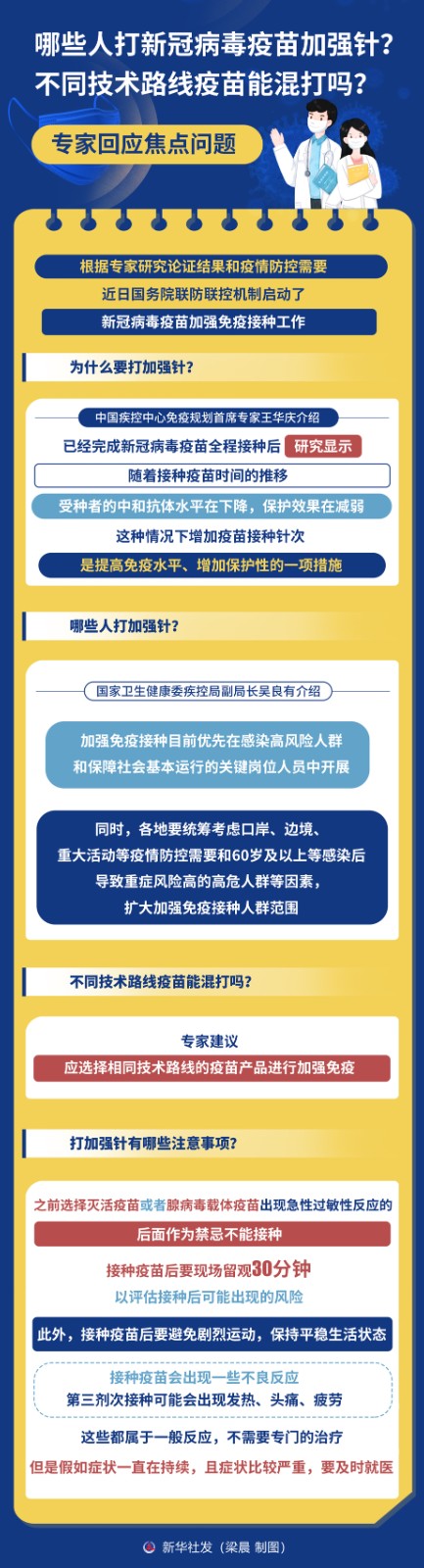 圖表:哪些人打新冠病毒疫苗加強(qiáng)針?不同技術(shù)路線疫苗能混打嗎?專家回應(yīng)焦點(diǎn)問題