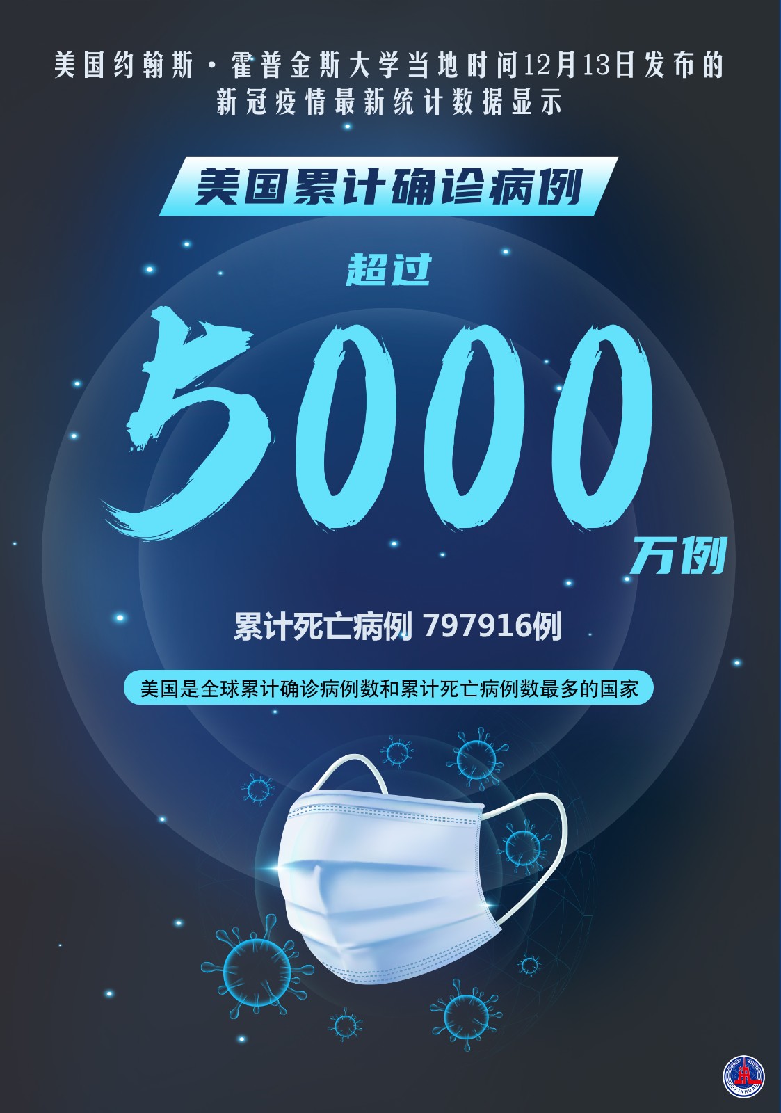 海報(bào):約翰斯·霍普金斯大學(xué):美國(guó)累計(jì)新冠確診病例超5000萬例