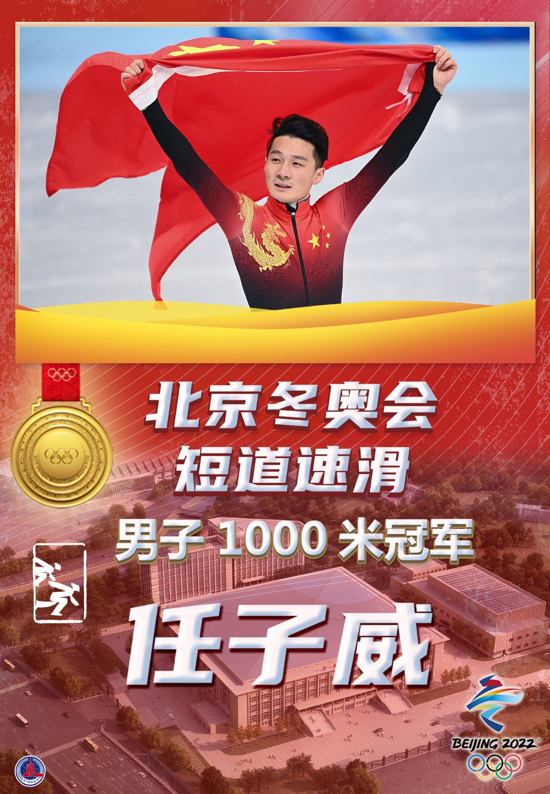 海報:任子威奪得短道速滑男子1000米金牌