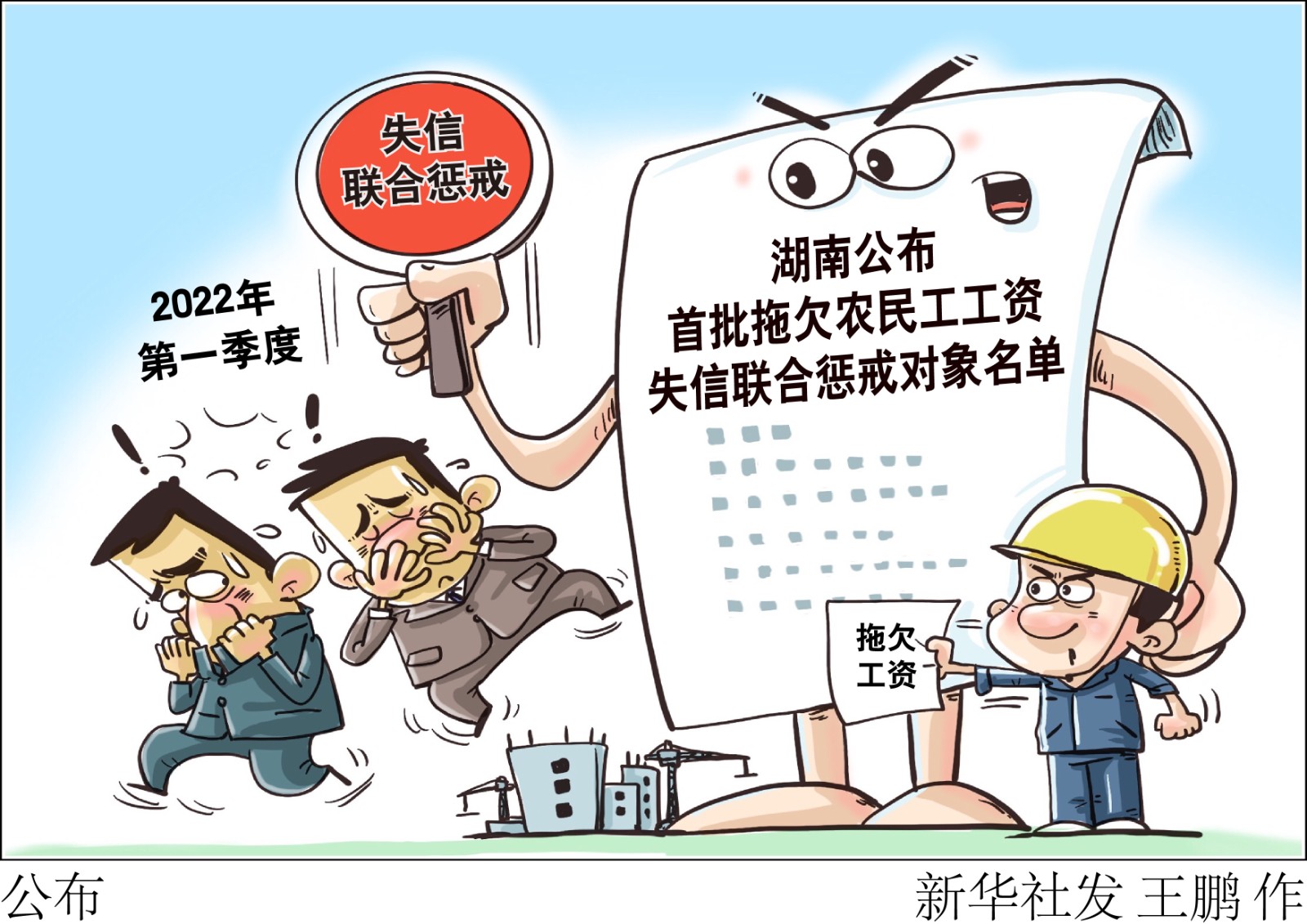 記者4月13日從湖南省人社廳獲悉,湖南省首批拖欠農(nóng)民工工資失信聯(lián)合懲戒對(duì)象名單、2022年第一季度重大勞動(dòng)保障違法案件已對(duì)外公布,旨在加大對(duì)重大勞動(dòng)保障違法行為的打擊力度,督促用人單位自覺(jué)遵守勞動(dòng)保障法律法規(guī)規(guī)章,維護(hù)廣大勞動(dòng)者勞動(dòng)保障權(quán)益。