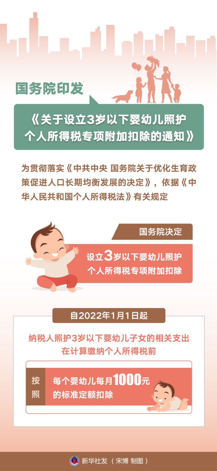 圖表:國(guó)務(wù)院印發(fā)《關(guān)于設(shè)立3歲以下嬰幼兒照護(hù)個(gè)人所得稅專項(xiàng)附加扣除的通知》