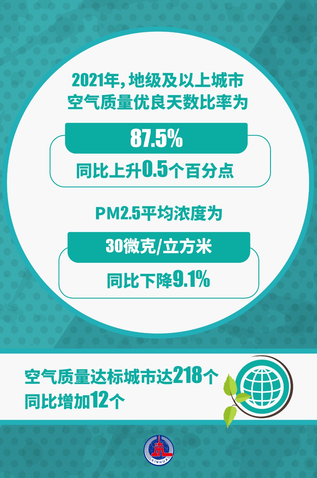 國(guó)務(wù)院關(guān)于2021年度環(huán)境狀況和環(huán)境保護(hù)目標(biāo)完成情況的報(bào)告4月18日提請(qǐng)全國(guó)人大常委會(huì)會(huì)議審議。報(bào)告顯示,2021年,地級(jí)及以上城市空氣質(zhì)量?jī)?yōu)良天數(shù)比率為87.5%,同比上升0.5個(gè)百分點(diǎn);PM2.5平均濃度為30微克/立方米,同比下降9.1%??諝赓|(zhì)量達(dá)標(biāo)城市達(dá)218個(gè),同比增加12個(gè)。