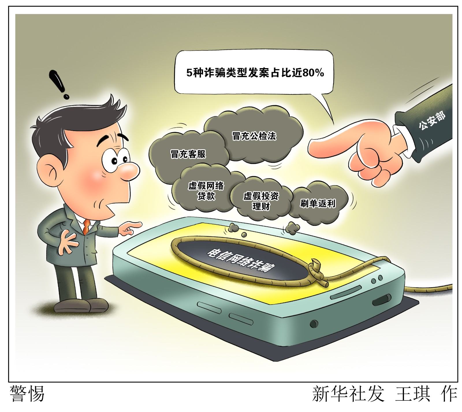 公安部公布,刷單返利、虛假投資理財、虛假網(wǎng)絡(luò)貸款、冒充客服、冒充公檢法5種詐騙類型發(fā)案占比近80%,成為最為突出的5大高發(fā)類案。