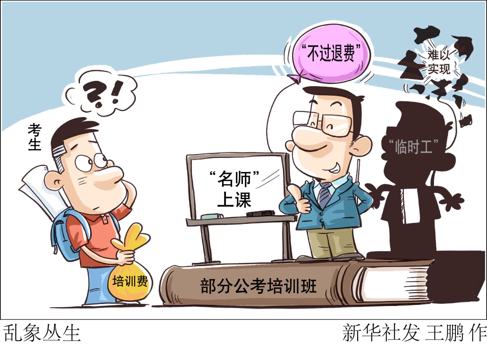 眼下,國(guó)家、地方公務(wù)員及選調(diào)生考試筆試大都已經(jīng)結(jié)束,一些地方面試因疫情推遲。為應(yīng)對(duì)公考筆試、面試,不少大學(xué)畢業(yè)生參加各種培訓(xùn)班?!靶氯A視點(diǎn)”記者調(diào)查發(fā)現(xiàn),有些培訓(xùn)機(jī)構(gòu)所謂的“名師”,竟是招聘的“臨時(shí)工”;所謂“不過(guò)退費(fèi)”,有的難以實(shí)現(xiàn)。