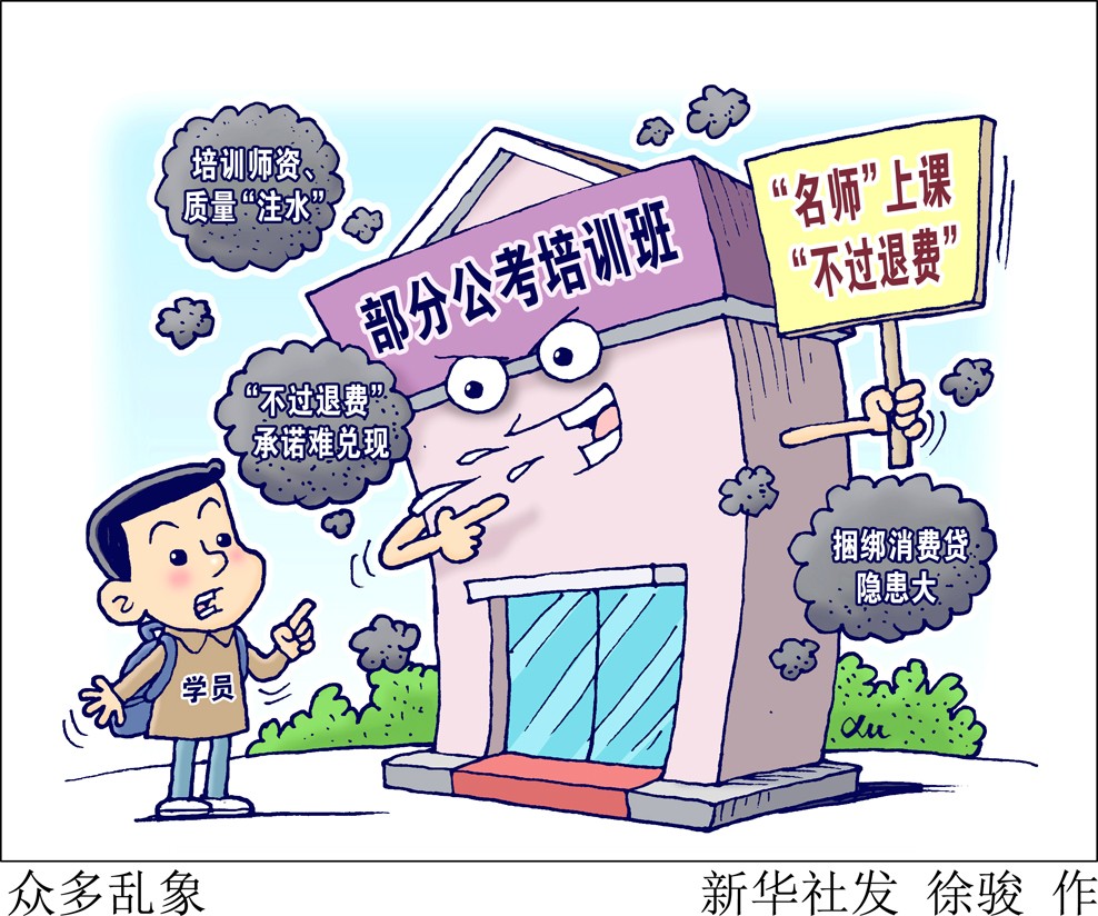 眼下,國(guó)家、地方公務(wù)員及選調(diào)生考試筆試大都已經(jīng)結(jié)束,一些地方面試因疫情推遲。為應(yīng)對(duì)公考筆試、面試,不少大學(xué)畢業(yè)生參加各種培訓(xùn)班。“新華視點(diǎn)”記者調(diào)查發(fā)現(xiàn),有些培訓(xùn)機(jī)構(gòu)所謂的“名師”,竟是招聘的“臨時(shí)工”;所謂“不過退費(fèi)”,有的難以實(shí)現(xiàn)。