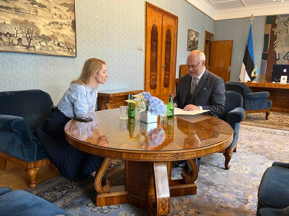6月3日,愛(ài)沙尼亞總統(tǒng)卡里斯(右)在首都塔林的總統(tǒng)府會(huì)見(jiàn)總理卡拉斯。