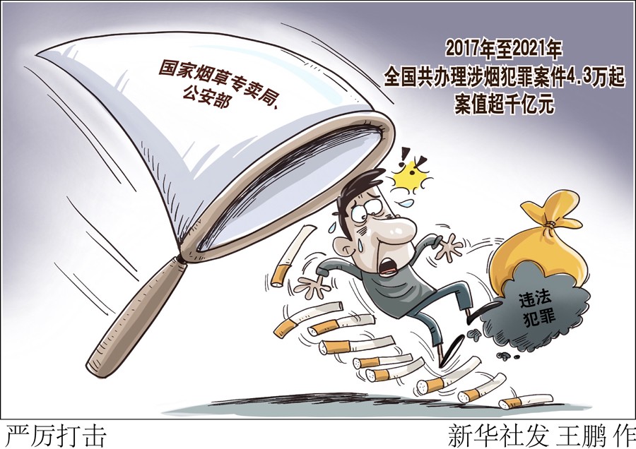 2017年至2021年,全國共辦理涉煙犯罪案件4.3萬起,查獲假煙210萬件、煙絲煙葉近10萬噸,收繳制假煙機(jī)1700余臺(tái)。國家煙草專賣局、公安部聯(lián)合掛牌督辦重大案件390余起,刑事拘留4.4萬人,先后組織破獲一批案值上億元的特大案件,為國家挽回經(jīng)濟(jì)損失超千億元。