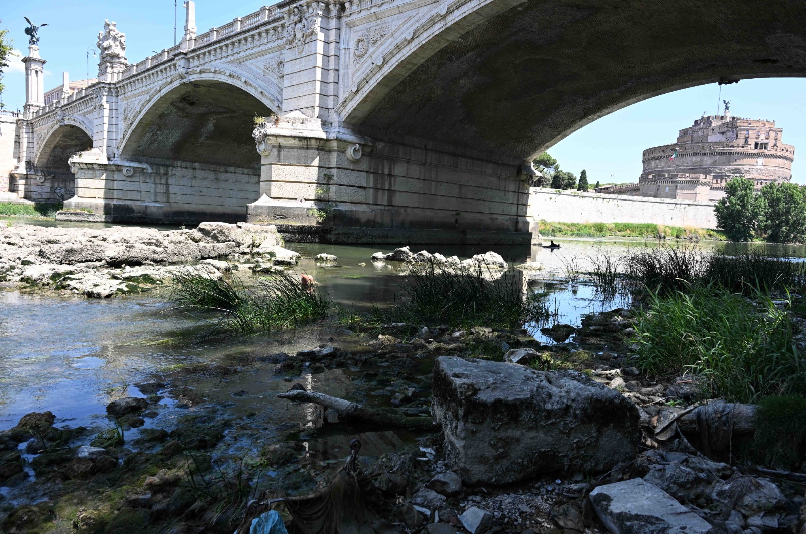 這是6月19日在意大利羅馬拍攝的水位降低的臺伯河。