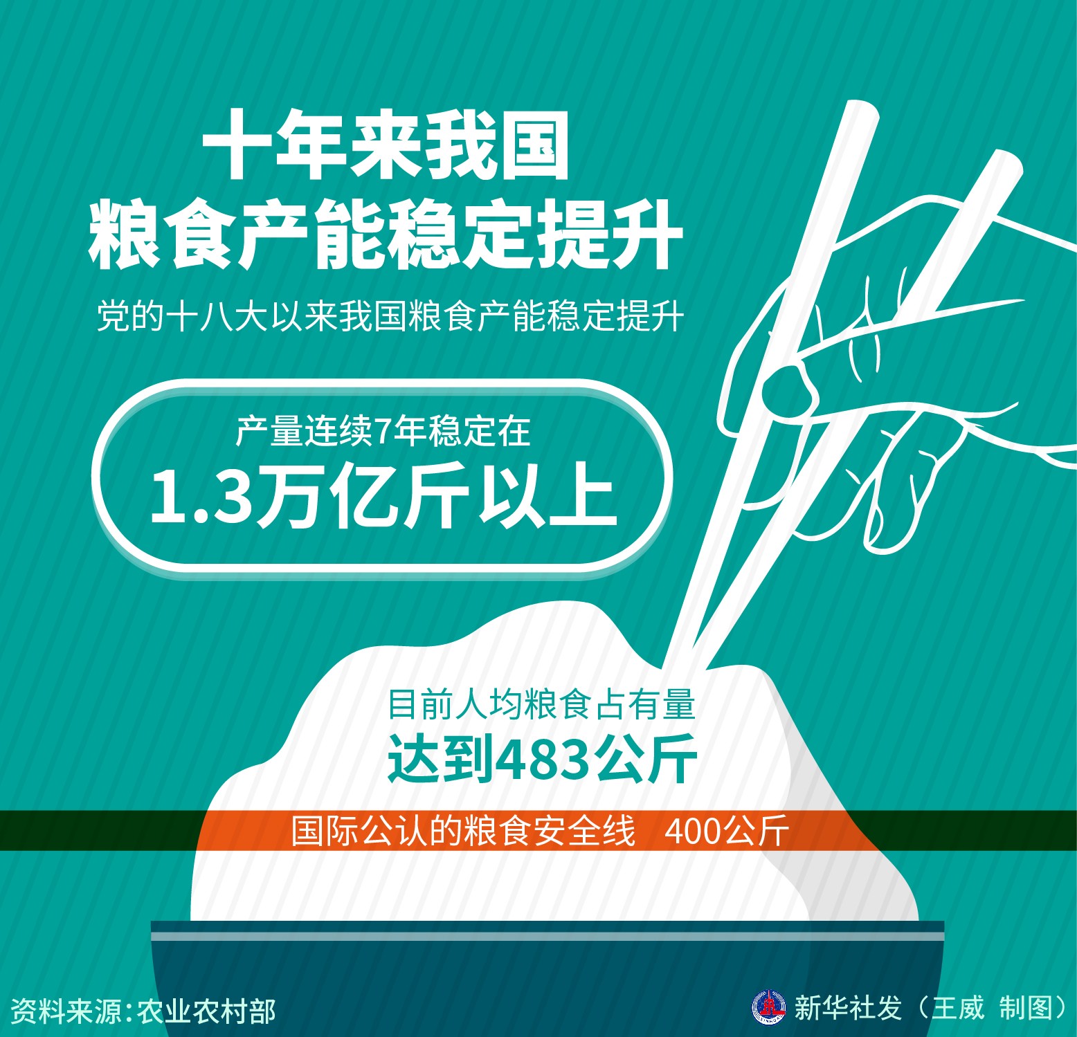 農(nóng)業(yè)農(nóng)村部副部長(zhǎng)鄧小剛6月27日表示,黨的十八大以來我國(guó)糧食產(chǎn)能穩(wěn)定提升,產(chǎn)量連續(xù)7年穩(wěn)定在1.3萬億斤以上。目前人均糧食占有量達(dá)到483公斤,高于國(guó)際公認(rèn)的400公斤糧食安全線。