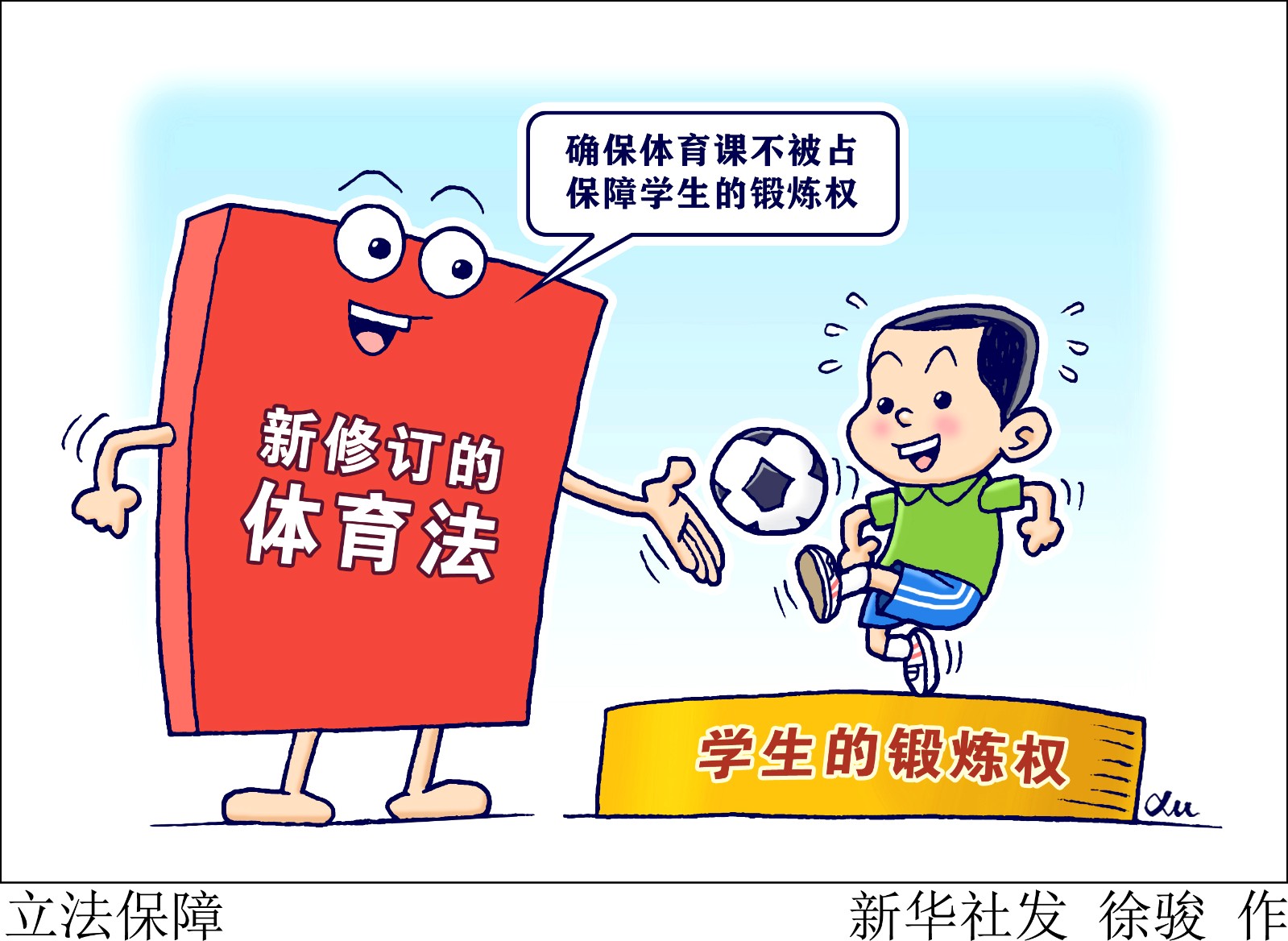 新修訂的體育法近日頒布,其中,確保體育課不被占、在校每天鍛煉不少于一小時等條款,充分體現(xiàn)了加強青少年身體素質、促進青少年全面發(fā)展的國家意志。
