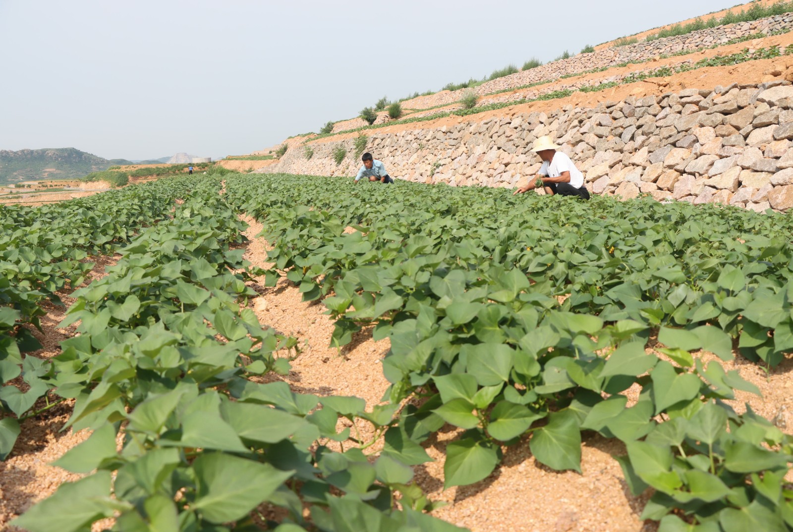 6月28日,河北省盧龍縣雙望鎮(zhèn)劉各莊村的村民在新改造的梯田上勞作。