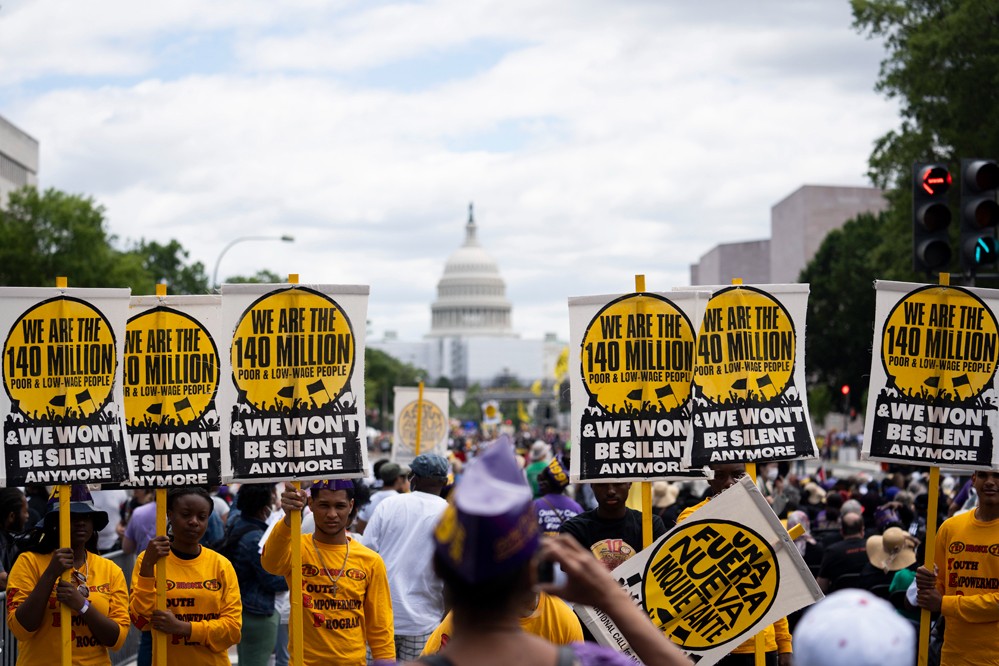 6月18日,來自美國全國各地的數(shù)千民眾在華盛頓國會大廈附近舉行集會,抗議美國根深蒂固的種族歧視以及由此引發(fā)的經(jīng)濟(jì)不公等一系列社會問題。