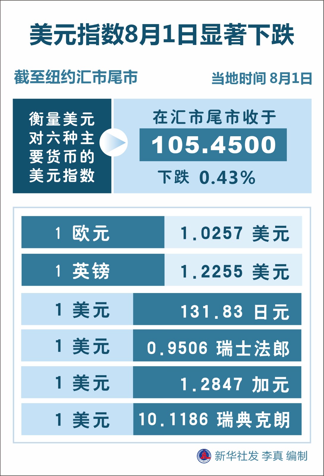 衡量美元對六種主要貨幣的美元指數(shù)當天下跌0.43%,在匯市尾市收于105.4500。