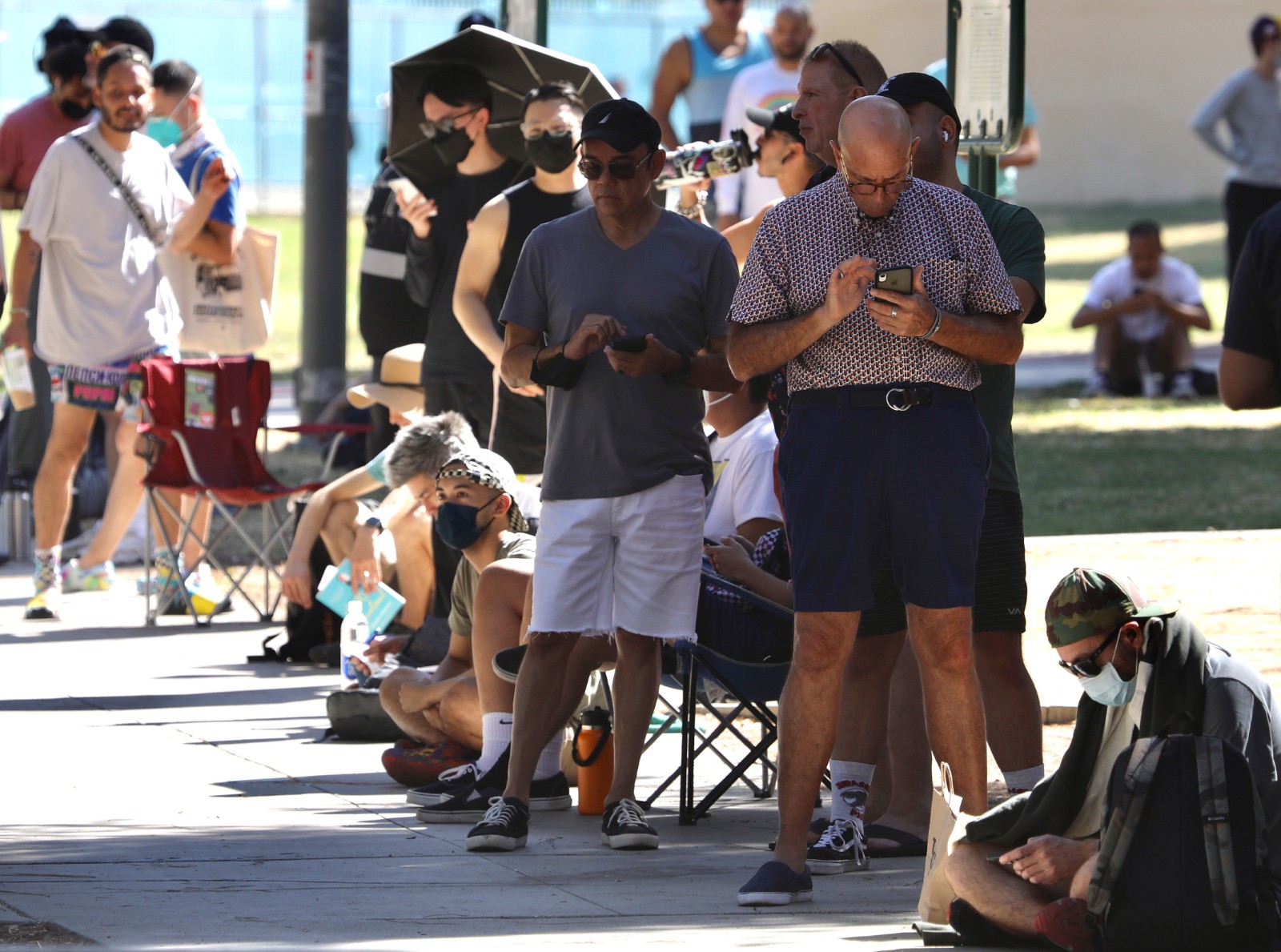 8月6日,人們在美國洛杉磯一處猴痘疫苗接種點(diǎn)排隊(duì)。