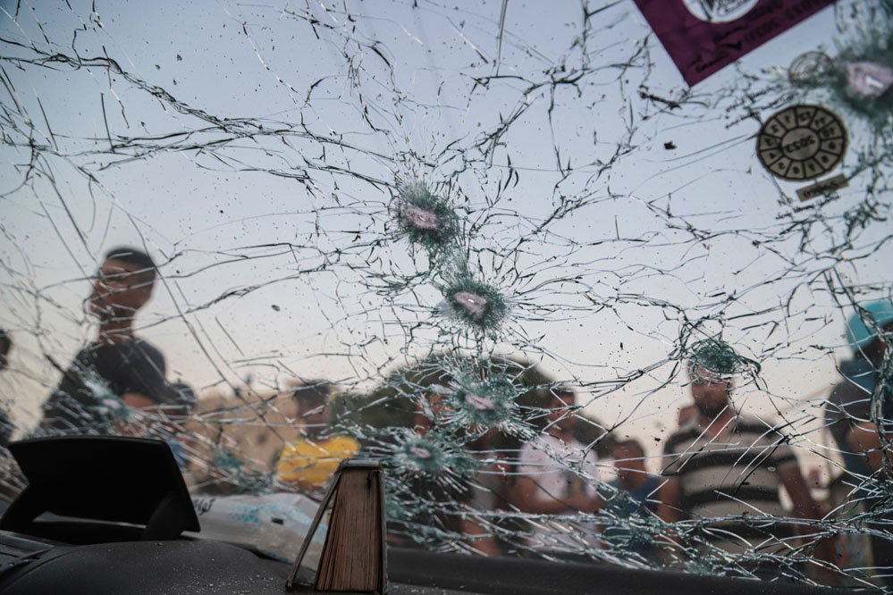 8月7日,人們?cè)诩由吵遣榭匆惠v在以色列空襲中損毀的汽車(chē)。