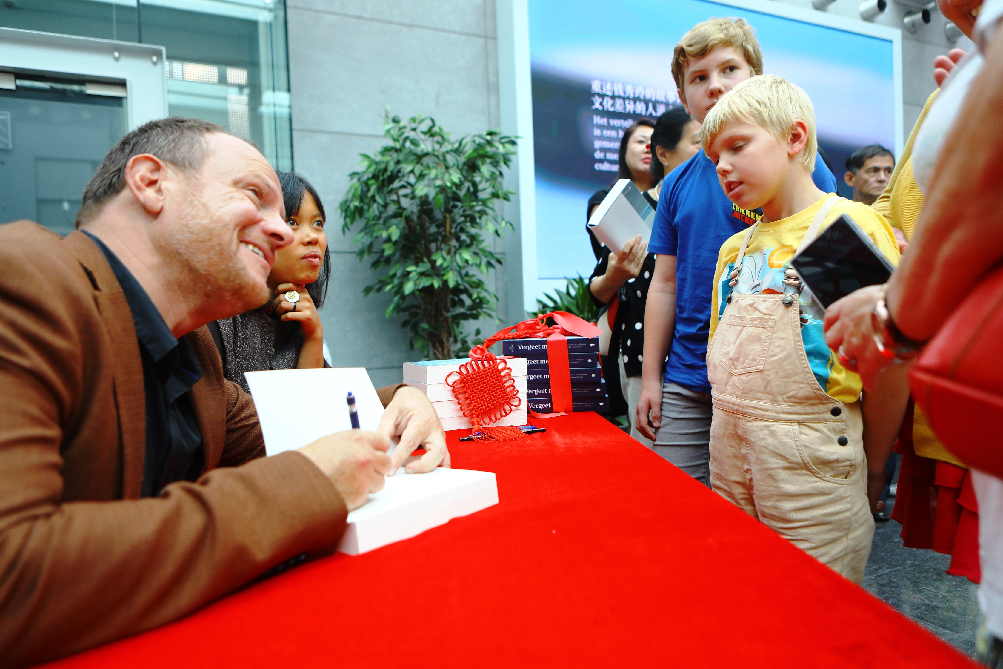 8月17日,在比利時布魯塞爾中國文化中心,出版社代表以及譯者在《忘記我》荷蘭語版新書發(fā)布儀式上簽名贈書。