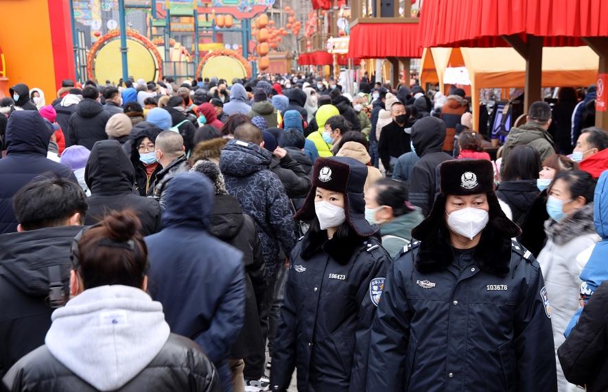 1月25日,遼寧省沈陽(yáng)市公安局治安管理局民警值守在旅游景點(diǎn),保障春節(jié)假期安全。