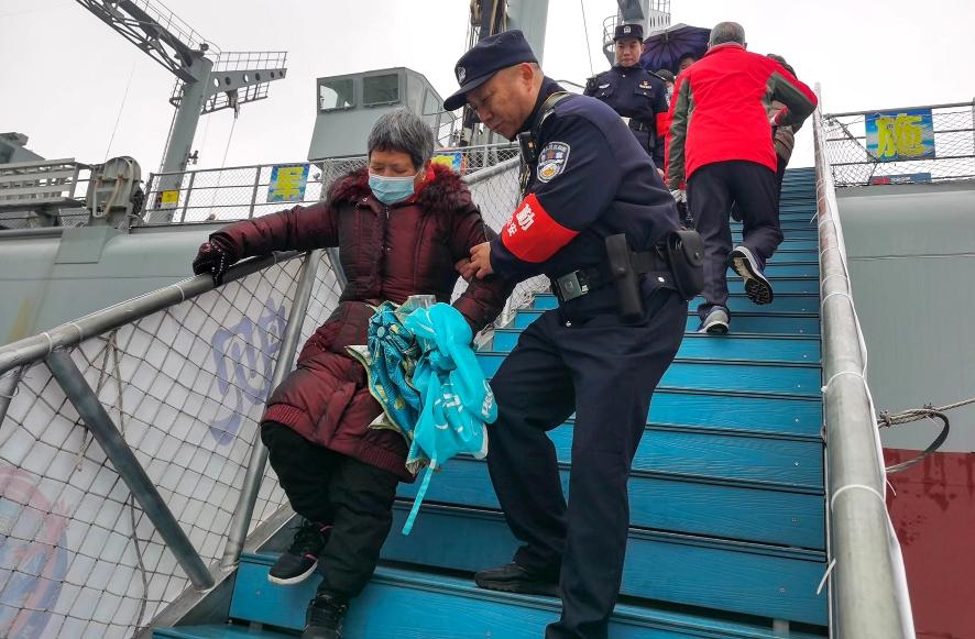 1月22日,長(zhǎng)江航運(yùn)公安局鎮(zhèn)江分局泰州派出所民警在長(zhǎng)江泰州海軍艦艇文化園值守崗位、服務(wù)群眾。
