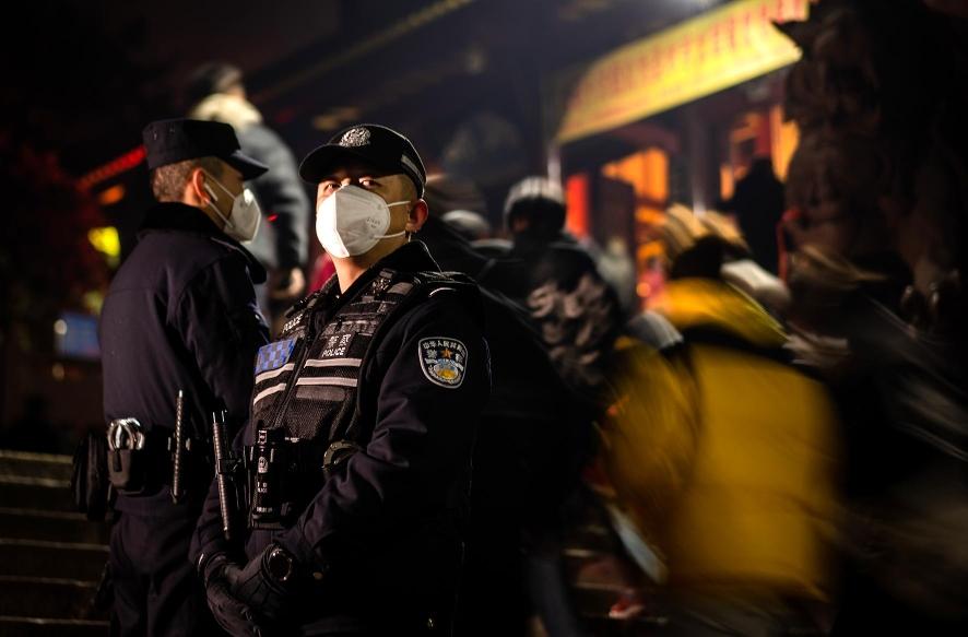 1月22日晚,四川省綿陽(yáng)市公安局民警在圣水寺大型民俗活動(dòng)現(xiàn)場(chǎng)執(zhí)勤。