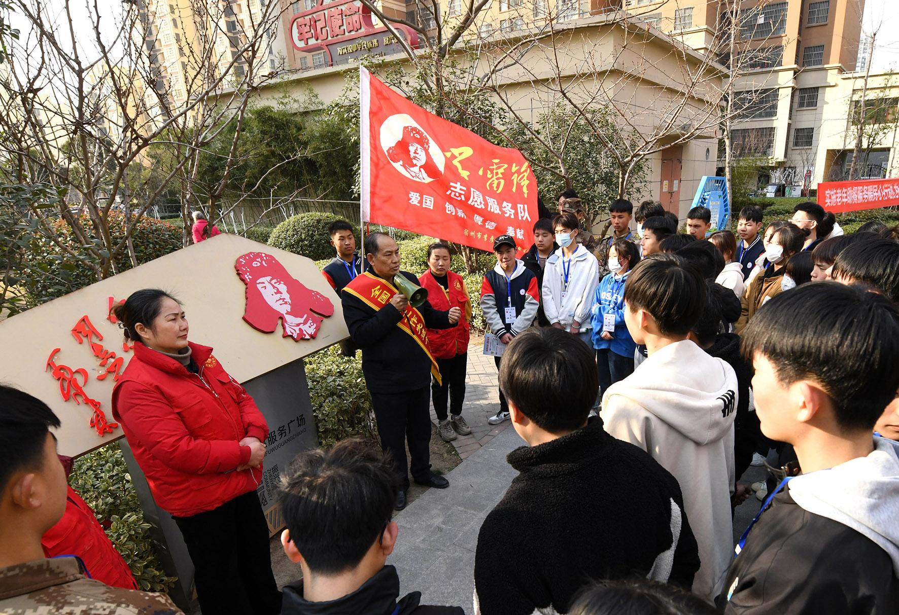3月2日,安徽省宿州市埇橋區(qū),普法宣傳志愿者在社區(qū)向青少年學生講解雷鋒生平事跡。
