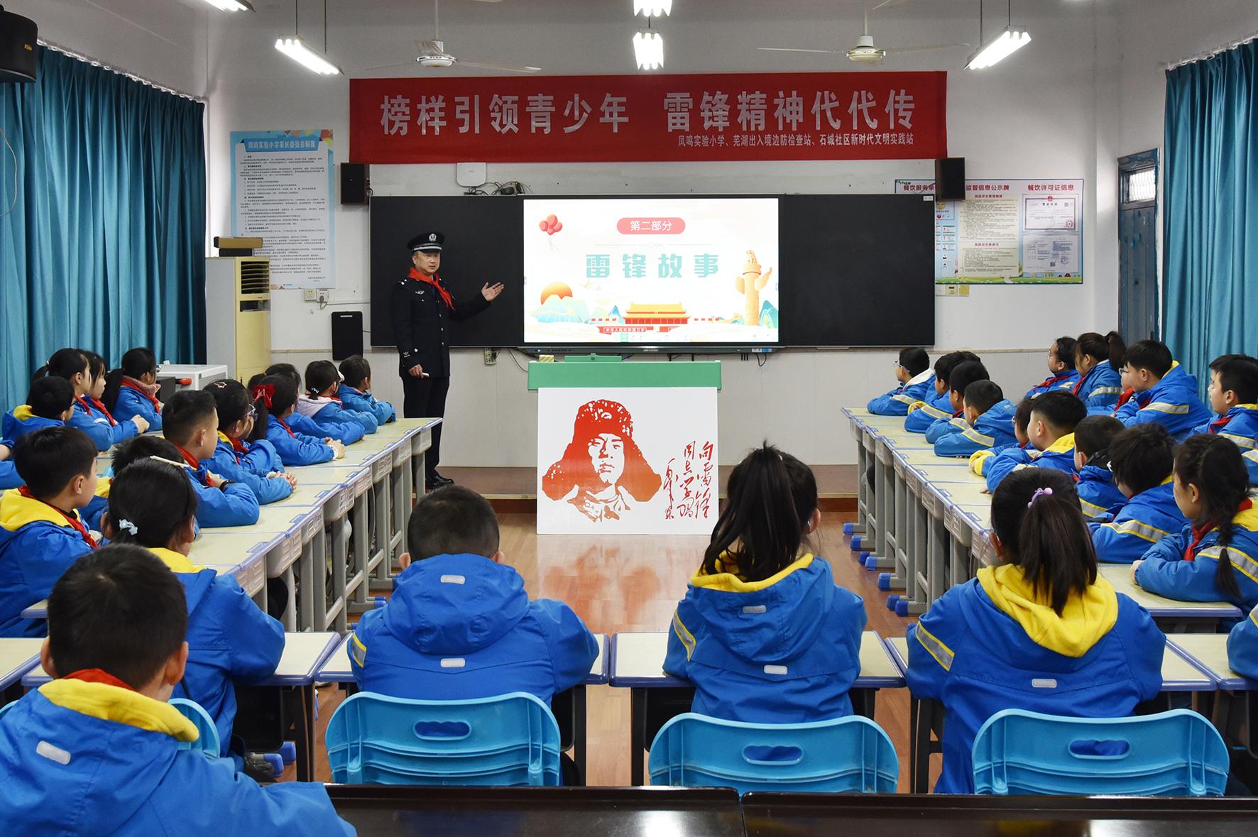 3月3日,安徽蕪湖邊境檢查站民警與鳳鳴實(shí)驗小學(xué)共同開展“榜樣引領(lǐng)青少年 雷鋒精神代代傳”主題活動。