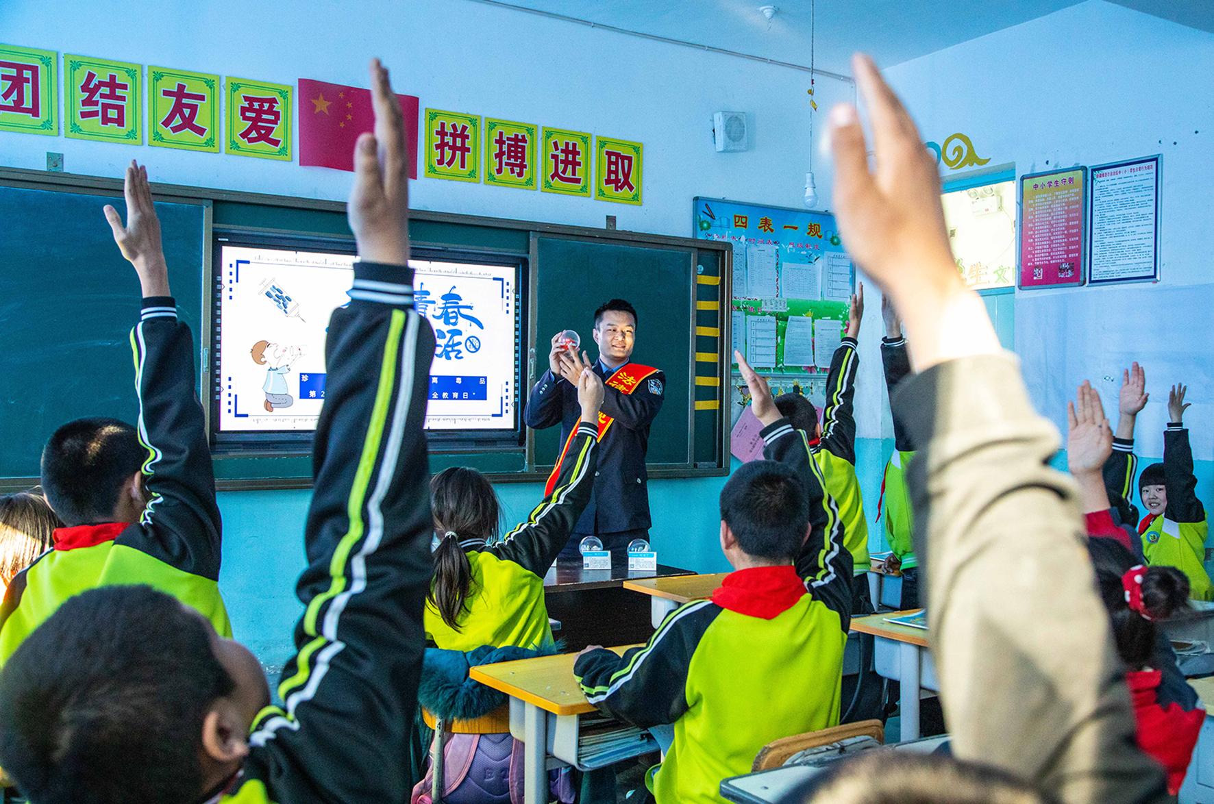 3月27日,甘肅省東鄉(xiāng)縣公安局鎖南派出所民輔警到轄區(qū)學(xué)校開展護(hù)苗行動(dòng),從反恐防暴、校園欺凌、交通安全、防范詐騙、禁毒禁賭等五個(gè)方面普及日常安全知識(shí)。