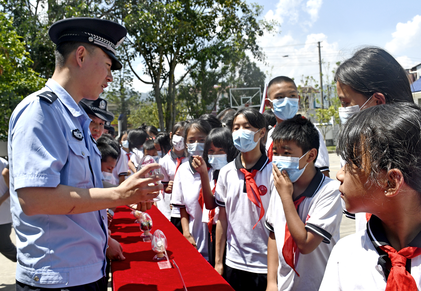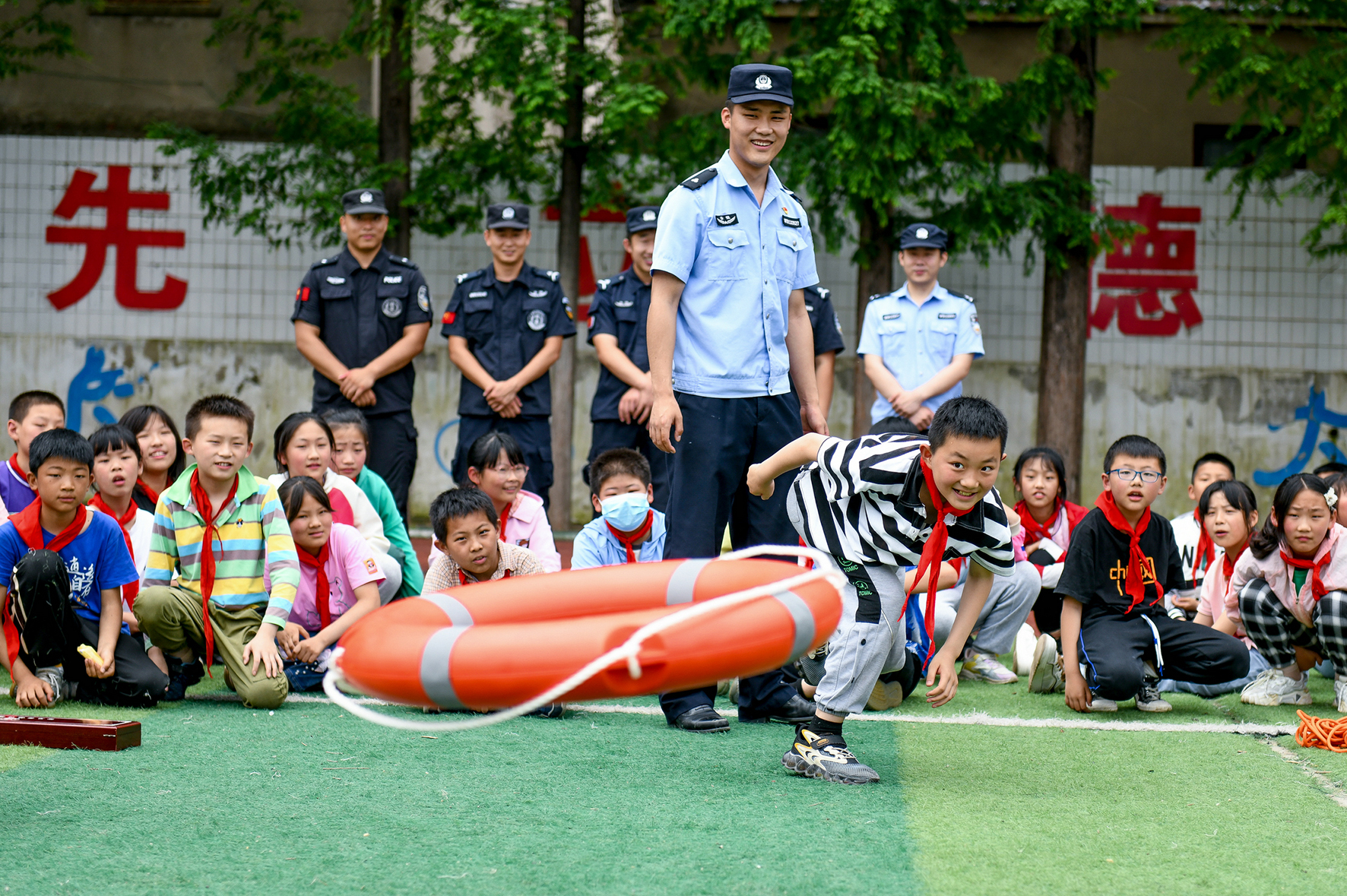 5月31日,安徽省馬鞍山市和縣公安局石楊派出所民警走進(jìn)石楊鎮(zhèn)中心小學(xué),通過緝毒犬表演、防溺水體驗(yàn)、傳授警體拳、安全知識有獎(jiǎng)競答等活動,讓孩子們在寓教于樂中學(xué)習(xí)安全知識。