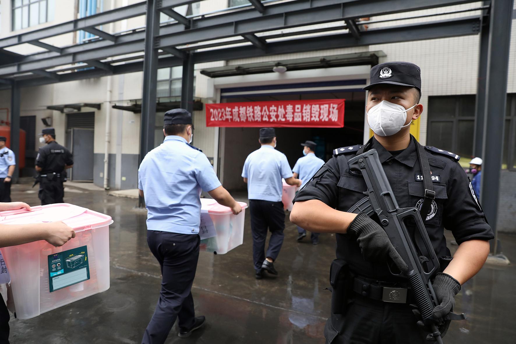 6月21日,成都鐵路公安處在四川省成都市郊的危險(xiǎn)廢物處置中心開(kāi)展“銷(xiāo)毒”行動(dòng),“無(wú)害化”集中銷(xiāo)毀各類(lèi)毒品總重24.5公斤。