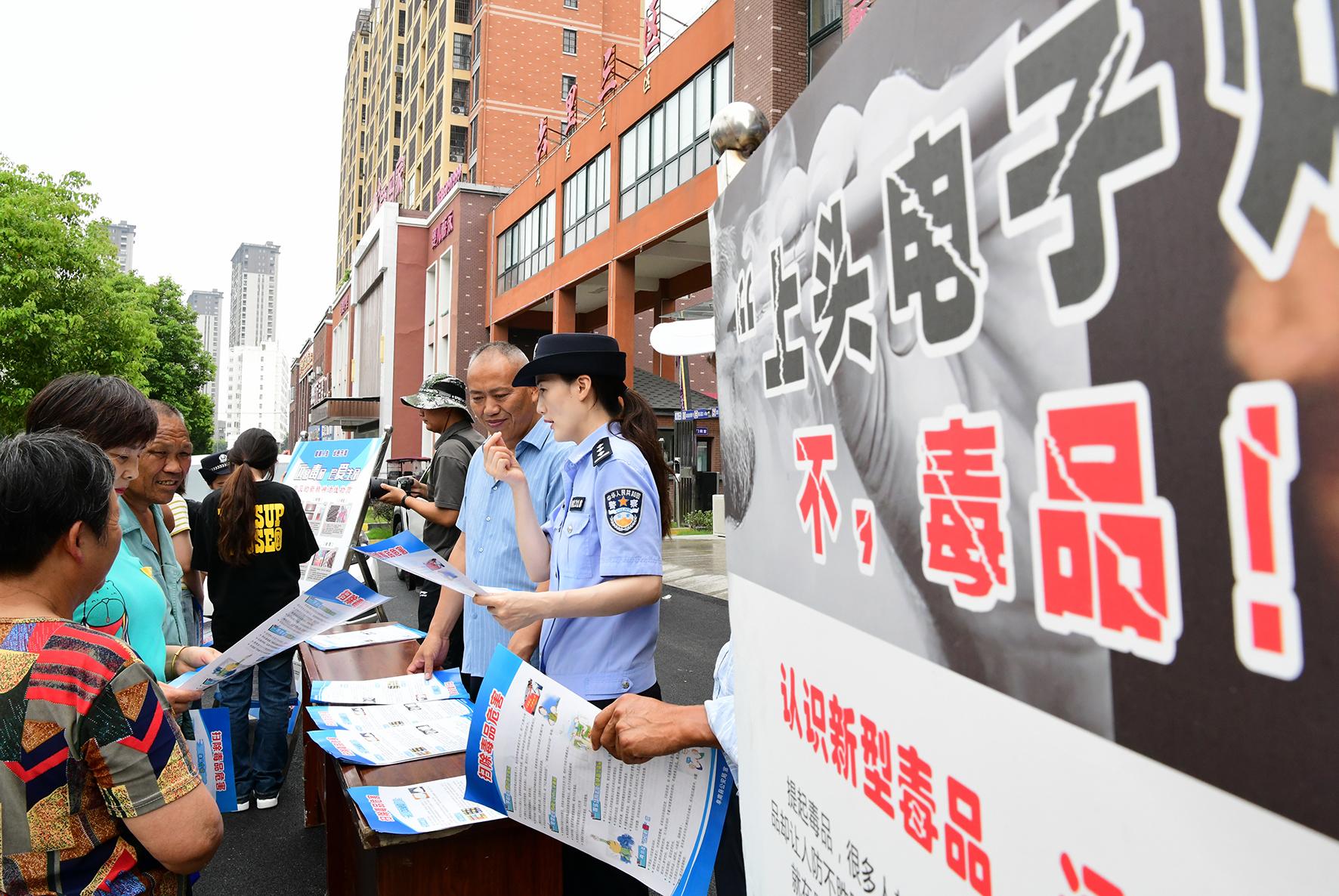 6月26日,江西省共青城市公安局組織開展6·26禁毒宣傳教育活動(dòng),向群眾宣講禁毒基本知識(shí)。